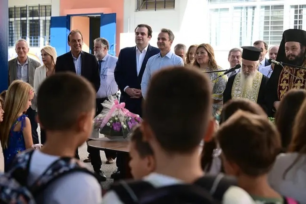 Από την πλευρά του, ο πρωθυπουργός, Κυριάκος Μητσοτάκης, παραβρέθηκε στον αγιασμό στο 2ο Δημοτικό Σχολείο Γλυφάδας.