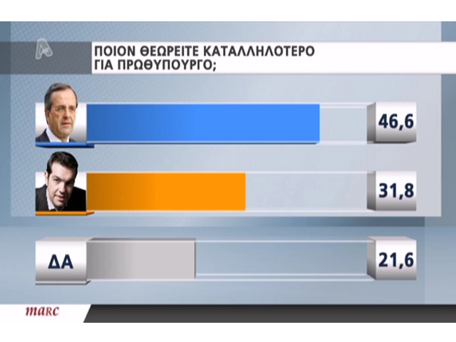 Καταλληλότερος πρωθυπουργός ο Αντώνης Σαμαράς.