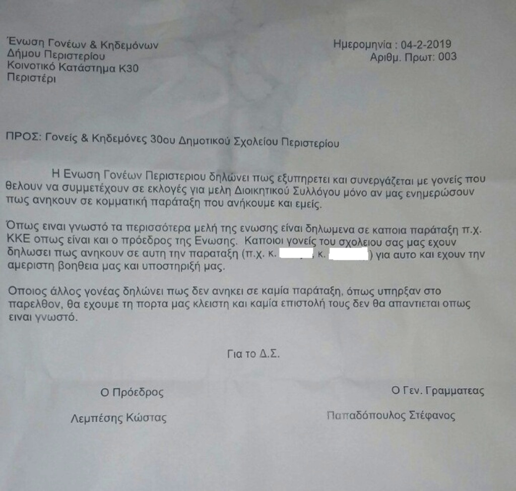 · Η Ένωση Γονέων Περιστερίου δεν έκλεισε σε κανένα γονιό την πόρτα. Είναι στην πρώτη γραμμή και μαζί με τους συλλόγους γονέων που αγωνίζονται για τη μόρφωση και τις συνθήκες μόρφωσης των παιδιών μας, για το μέλλον τους, για Δημόσια Δωρεάν Παιδεία.