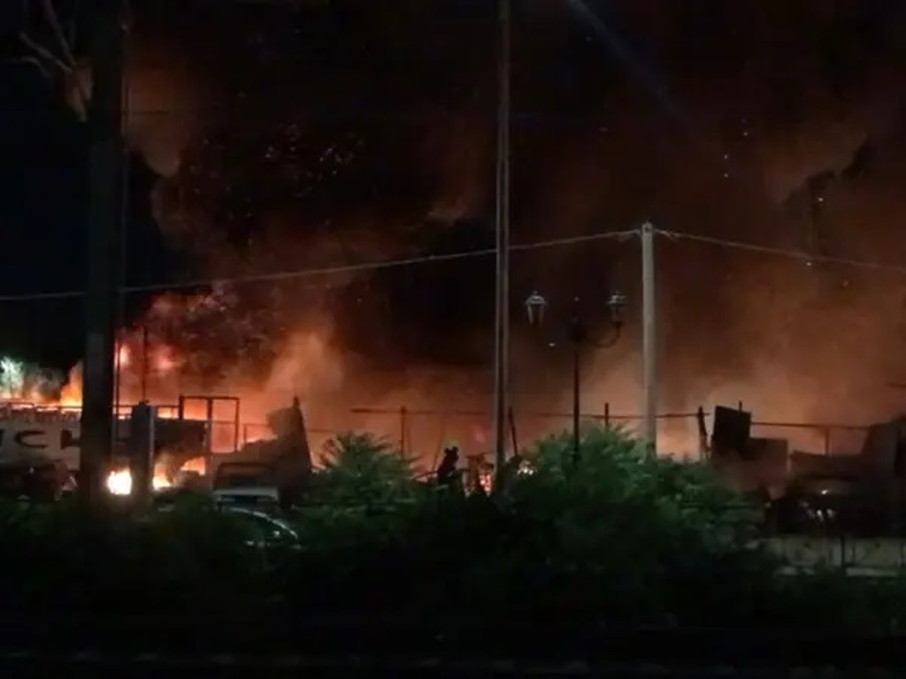 Οι προσπάθειες των πυροσβεστών επικεντρώνονται στο να μην επεκταθούν οι φλόγες σε γειτονικές επιχειρήσεις.