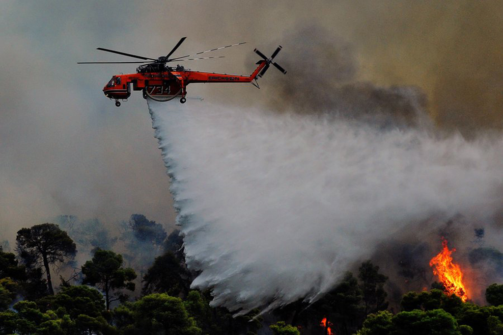Στην κατάσβεση μετέχουν 10 οχήματα της Πυροσβεστικής, ενώ πραγματοποιήθηκαν εναέριες ρίψεις από αεροσκάφη Πετζετέλ και ελικόπτερο.