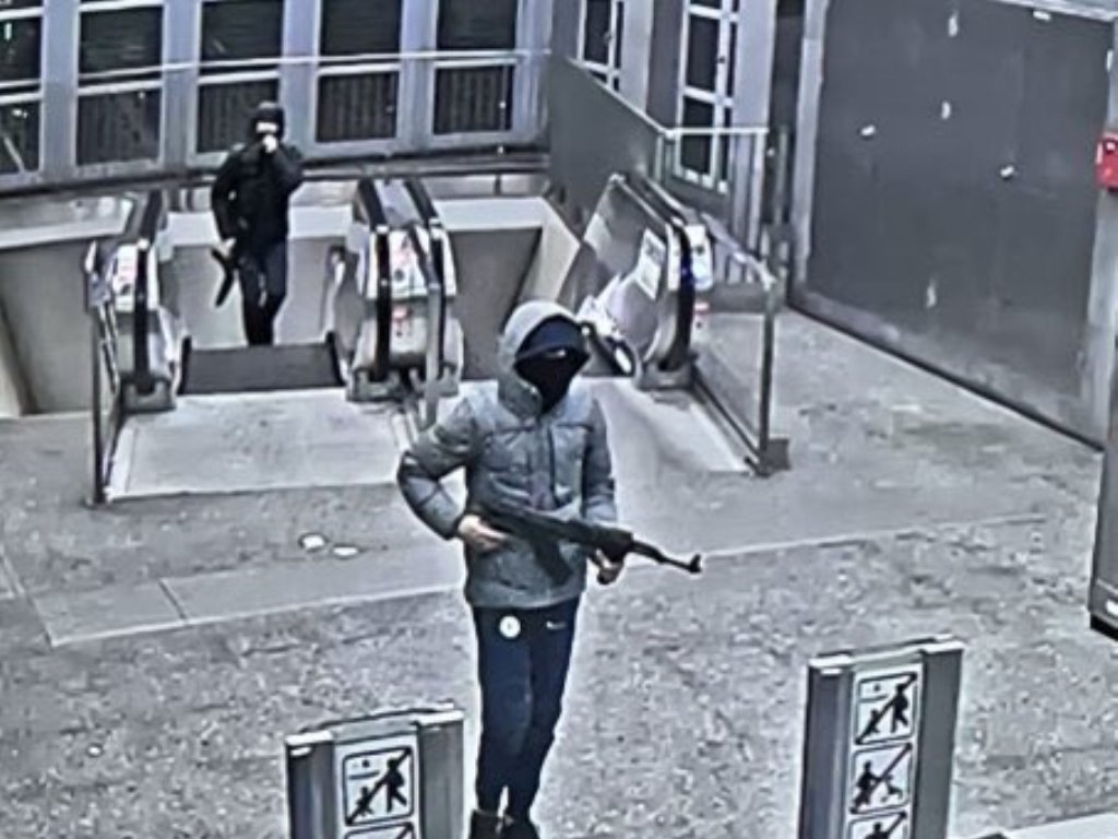 Βίντεο που κυκλοφορούν στο διαδίκτυο και φέρεται να προέρχονται από το κλειστό κύκλωμα καμερών δείχνουν νεαρούς με κουκούλες έξω από τον σταθμό του μετρό στις Βρυξέλλες να κρατούν όπλα που μοιάζουν με καλάσνικοφ ενώ φαίνονται και λάμψεις από πυροβολισμούς.