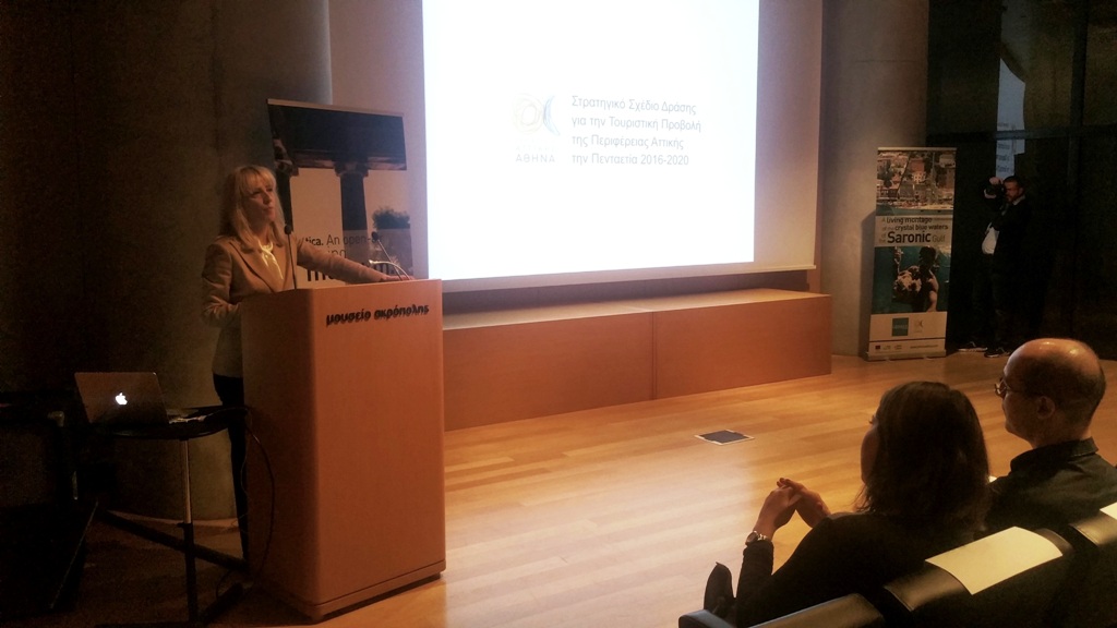 Η Περιφερειάρχης Αττικής, Ρένα Δούρου, παρέστη σήμερα στο Αμφιθέατρο του Μουσείου της Ακρόπολης, στην εκδήλωση που διοργάνωσε η Διεύθυνση Τουρισμού της Περιφέρειας, για την παρουσίαση του Στρατηγικού Σχεδίου Δράσης της Τουριστικής Προβολής της Περιφέρειας Αττικής για την περίοδο 2016-2020.