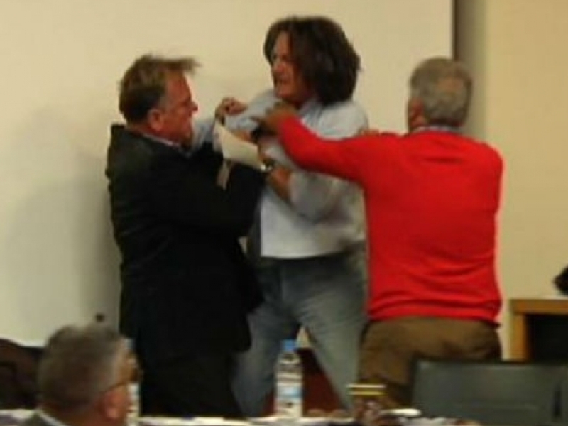 Οι δύο άνδρες άρχισαν να σπρώχνουν ο ένας τον άλλο μπροστά στα μάτια των έκπληκτων συναδέλφων τους και να παλεύουν μεταξύ τους. Δημοτικοί σύμβουλοι μπήκαν στη μέση για να τους χωρίσουν ενώ η συνεδρίαση διεκόπη προκειμένου να ηρεμήσουν τα πνεύματα.