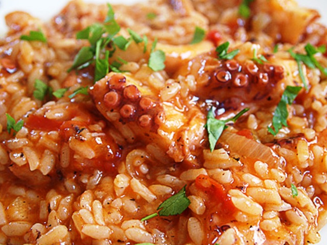 Ωραίο, γευστικότατο, πλούσιο ριζότο με χταπόδι και ντομάτα.