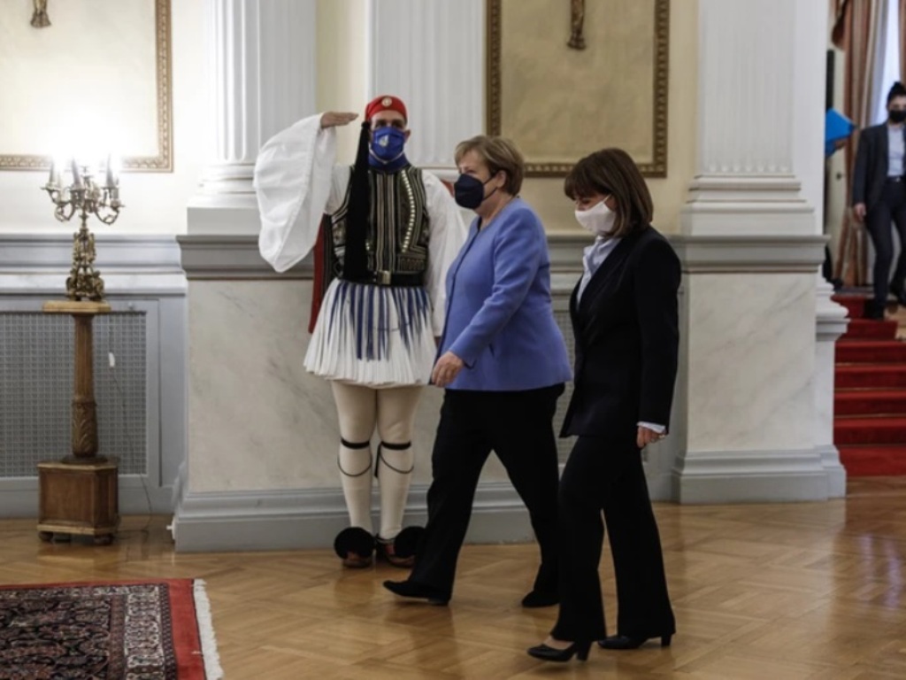 Δεκτή από την Πρόεδρο της Δημοκρατίας Κατερίνα Σακελλαροπούλου έγινε η Καγκελάριος της Γερμανίας, Άνγκελα Μέρκελ.