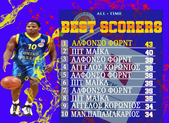 Σχεδόν τρία χρόνια μετά ο Πιτ Μάικλ πλησίασε στο ρεκόρ του Φορντ αλλά έμεινε τρεις πόντους πιο χαμηλά, σημειώνοντας 40 στο εκτός έδρας παιχνίδι με το Ηράκλειο της περιόδου 2003-04 (84-97).