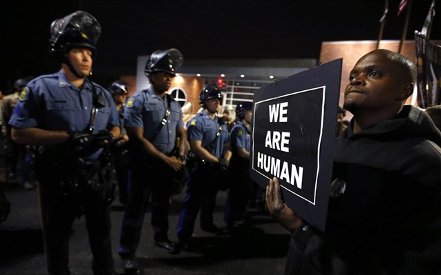 «Τα τοπικά αστυνομικά τμήματα μας έχουν ρίξει δακρυγόνα, μας έχουν χτυπήσει και μας έχουν πυροβολήσει με πλαστικές σφαίρες, όμως δεν μπορούν να σταματήσουν την πορεία μας υπέρ της δικαιοσύνης», είπε ο Τεφ Πόε ράπερ από το Σεντ Λιούις και στέλεχος της Hands Up United.