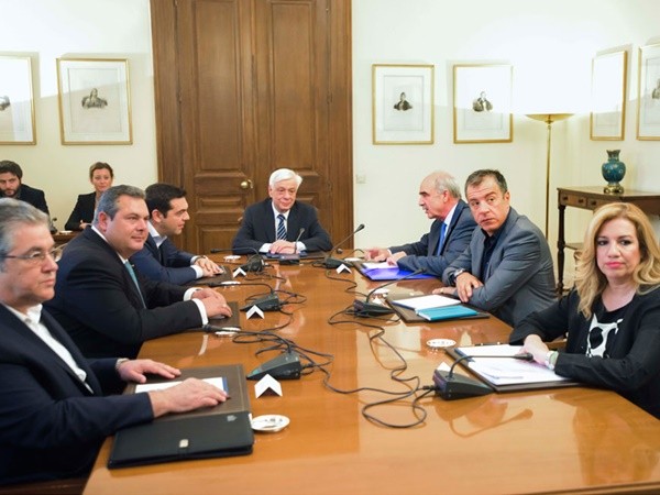 Σε εξέλιξη στο Προεδρικό Μέγαρο το συμβούλιο των πολιτικών αρχηγών, υπό τον Πρόεδρο της Δημοκρατίας. Λίγο μετά τις 10 το πρωί, μετέβη ο Αλέξης Τσίπρας, συνοδευόμενος από τον υπουργό Επικρατείας Νίκο Παππά και τον κυβερνητικό εκπρόσωπο Γαβριήλ Σακελλαρίδη και αμέσως μετά ο Πρόεδρος Δημοκρατίας.