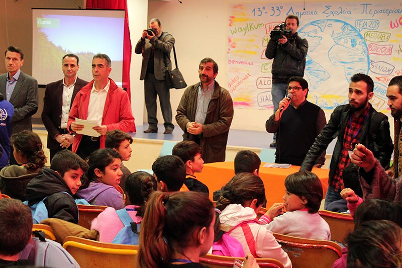 Τα παιδιά συνόδευσαν μέσα στο σχολείο εκπαιδευτικοί και γονείς ενώ στη συνοδεία των μικρών προσφύγων ήταν και ο διευθυντής εκπαίδευσης Γ’ Αθήνας, Αδάμ Στάμος.