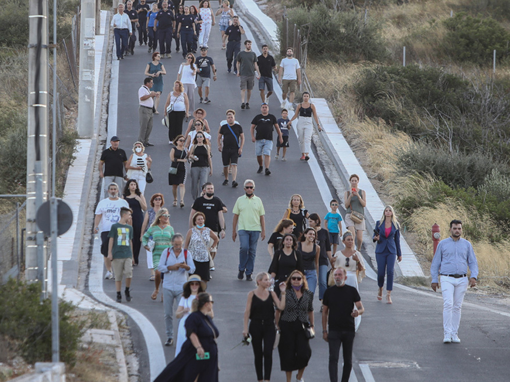 Στη συνέχεια με πορεία οι συγκεντρωμένοι κατευθύνθηκαν προς τον Ναυτικό Αθλητικό Όμιλο Ματιού, όπου πραγματοποιήθηκε κεντρική εκδήλωση, κάνοντας ωστόσο μια στάση στα 17 κυπαρισσάκια που έχουν τοποθετηθεί στη μνήμη των 17 κατοίκων του Νεου Βουτζά που έχασαν τη ζωή τους από την φονική πυρκαγιά της 23ης Ιουλίου του 2018.