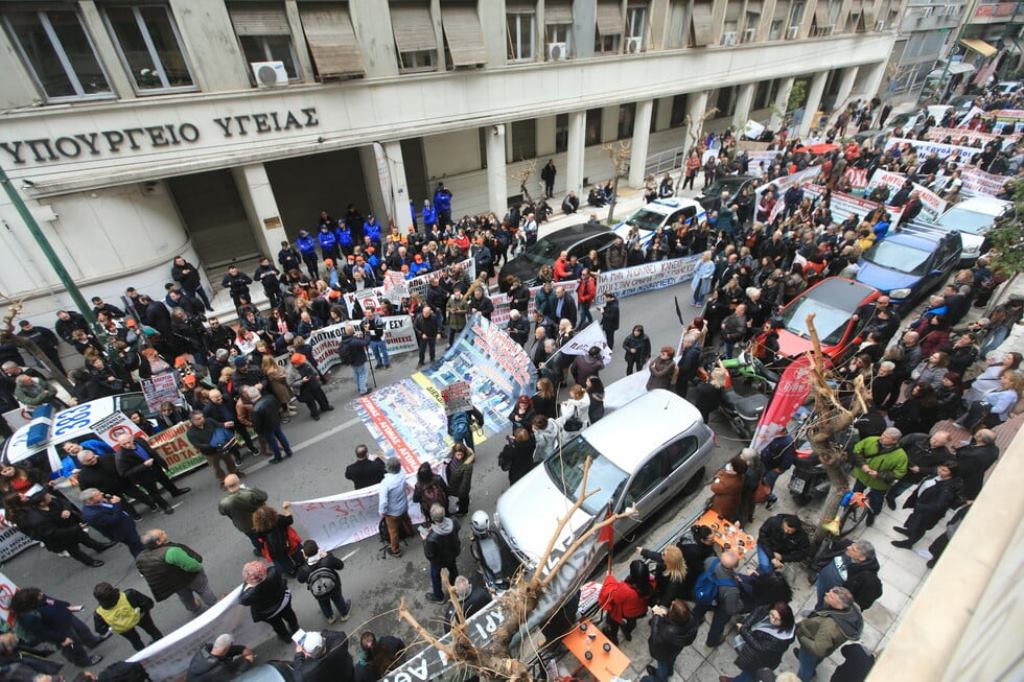 Λίγο αργότερα ξεκίνησε και η πορεία των υγειονομικών και των γιατρών στα δημόσια νοσοκομεία που είχαν ραντεβού νωρίτερα στην πλατεία Μαβίλη. Ακολούθησε πορεία μέχρι το Μέγαρο Μαξίμου, μέσω της βασιλίσσης Σοφίας για να καταλήξουν στο υπουργείο Παιδείας.