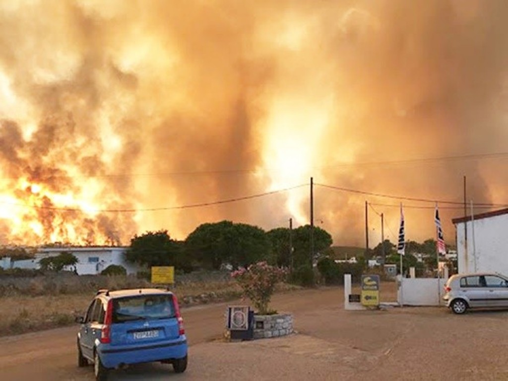 Τα δύο μεγάλα μέτωπα που υπάρχουν αυτή την ώρα στο νησί είναι στις περιοχές Πιτσινιάνικα και στη Μονή Μυρτιδίων. Τις προσπάθειες των πυροσβεστών δυσχεραίνουν οι δυνατοί άνεμοι και η αλλαγή της κατεύθυνσής τους.