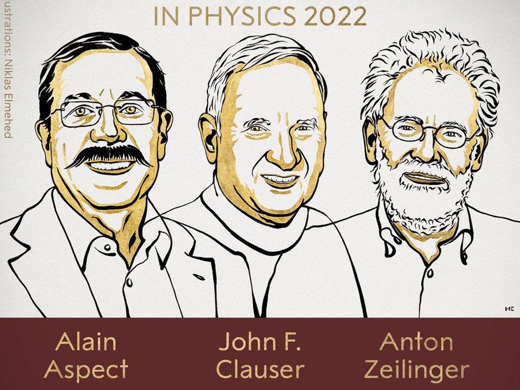 Το βραβείο πήραν ο αμερικανός Τζον Κλάουζερ, ο Γάλλος Αλέν Ασπέ και ο Αυστριακός Αντόν Τσάιλινγκερ που πραγματοποίησαν πειράματα με πόλωση φωτονίων για ελέγξουν την ισχύ του θεωρήματος Bell η οποία απορρίπτει την ύπαρξη κρυμμένων μεταβλητών σε κβαντικά συστήματα. Ο Αλέν Ασπέ, ηλικίας 75 ετών, είναι μέλος του γαλλικού πανεπιστημίου Paris-Saclay και της Ecole Polytechnique, ο Τζον Κλάουζερ, 79 ετών και ο Άντον Τσάιλινγκερ, 77 ετών είναι καθηγητές του πανεπιστημίου της Βιέννης.