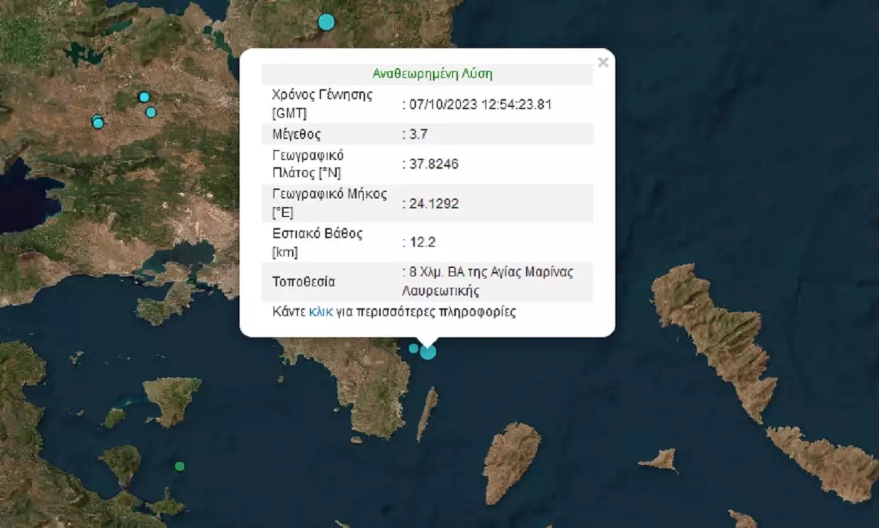Σύμφωνα με την αναθεωρημένη λύση του Γεωδυναμικού Ινστιτούτου ο σεισμός ήταν 3,7 Ρίχτερ και σημειώθηκε στη θαλάσσια περιοχή ανοικτά του Λαυρίου.