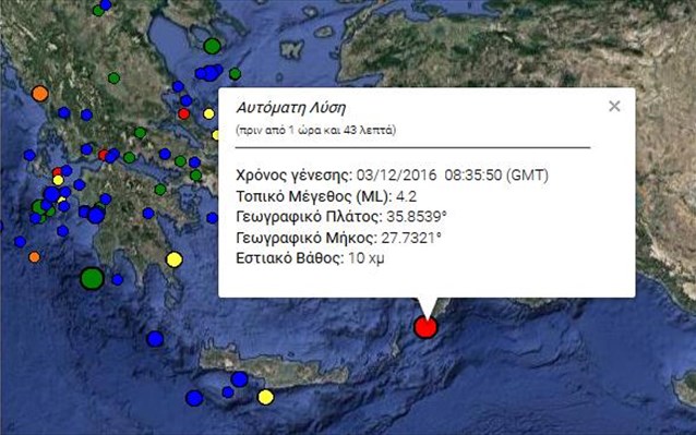 Η δόνηση σημειώθηκε στις 10.35 και είχε επίκεντρο 43 χλμ βόρεια της Καρπάθου. Το εστιακό της βάθος είναι στα 10 χιλιόμετρα.
