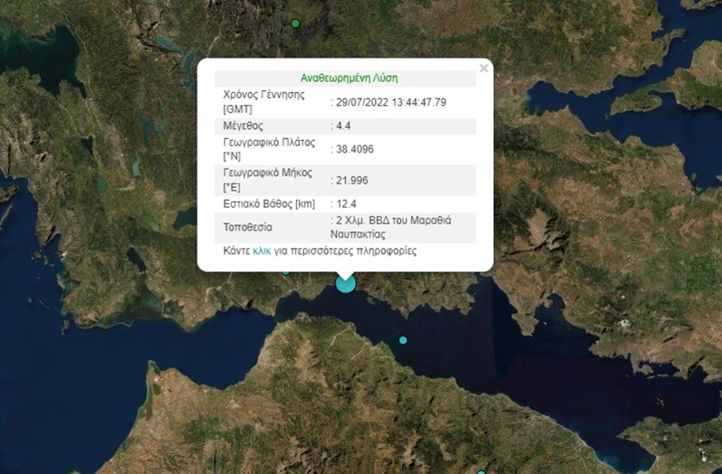 Σεισμός μεγέθους 4,4 βαθμών της κλίμακας Ρίχτερ σημειώθηκε στις 16:44 στην περιοχή της Ναυπάκτου, σύμφωνα με το Γεωδυναμικό Ινστιτούτο.