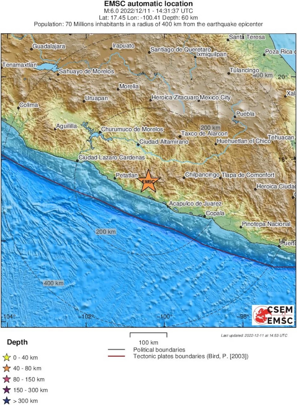 Σεισμός μεγέθους 6 βαθμών της κλίμακας Ρίχτερ έπληξε το νοτιοδυτικό Μεξικό την Κυριακή (11/12).