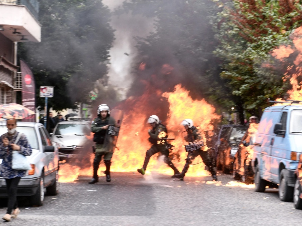 Προς το τέλος της πορείας όμως διαδηλωτές συνεπλάκησαν με αστυνομικούς στους οποίους πέταξαν βόμβες μολότοφ με αποτέλεσμα οι άνδρες των ΜΑΤ να απαντήσουν με χρήση χημικών.