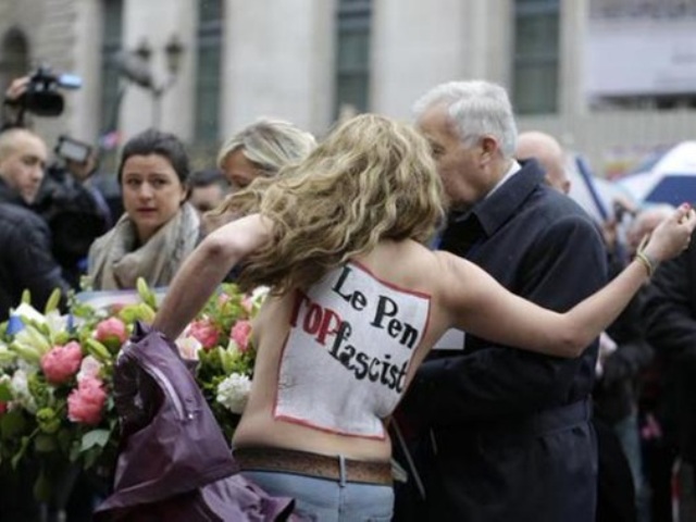Αντιμέτωπη με τρεις γυμνόστηθες γυναίκες, μέλη της φεμινιστικής οργάνωσης Femen, που είχαν γράψει στα σώματά τους τη φράση «Χάιλ Λεπέν», ήρθε η πρόεδρος του ακροδεξιού Εθνικού Μετώπου Μαρίν Λεπέν ενώ εκφωνούσε ομιλία σε συγκεντρωμένους υποστηρικτές της σε μια πλατεία στο κέντρο του Παρισιού.