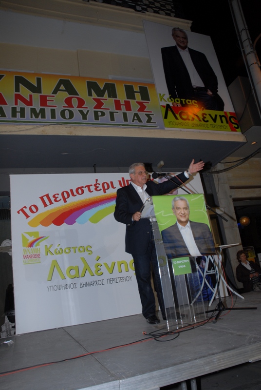Ο κ. Κώστας Λαλένης, υποψήφιος Δήμαρχος Περιστερίου, ολοκληρώνει την προεκλογική δραστηριότητά του, με την κεντρική ομιλία, σήμερα Πέμπτη στις 8 το βράδυ στην πλατεία Δημαρχείου.Ο κ. Κώστας Λαλένης, υποψήφιος Δήμαρχος Περιστερίου, ολοκληρώνει την προεκλογική δραστηριότητά του, με την κεντρική ομιλία, σήμερα Πέμπτη στις 8 το βράδυ στην πλατεία Δημαρχείου.