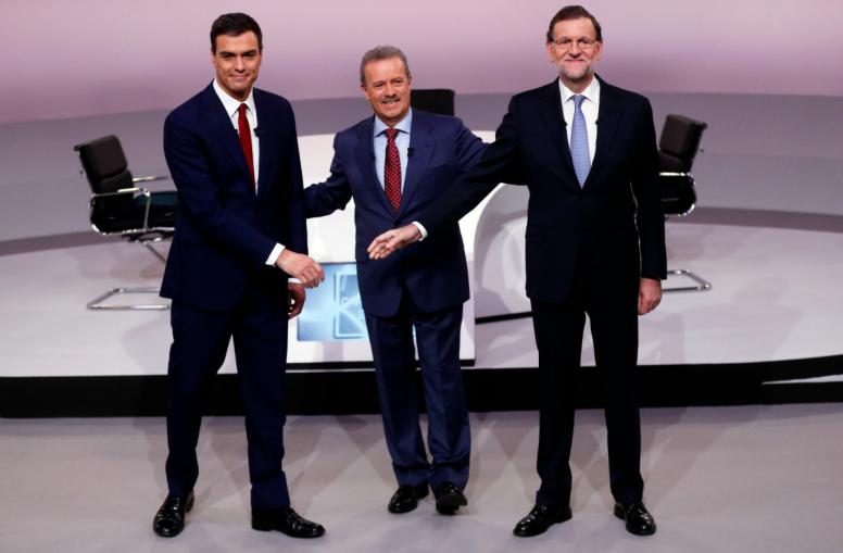Με στόχο να πείσουν και να προσελκύσουν όσον το δυνατό περισσότερους από τους αναποφάσιστους ψηφοφόρους, ο κεντροδεξιός Ισπανός πρωθυπουργός Μαριάνο Ραχόι και ο σοσιαλιστής ηγέτης της αξιωματικής αντιπολίτευσης Πέδρο Σάντσεθ διαξιφίσθηκαν τηλεοπτικά το βράδυ της Δευτέρας, με την αντιπολίτευση να τους κατηγορεί για απόπειρα αναβίωσης του δικομματισμού.