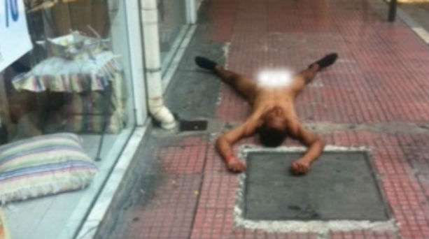 Την απόλυτη δημόσια διαπόμπευση βίωσε ένας άνδρας, πιθανότατα βορειοαφρικανικής καταγωγής, ο οποίος, στις 09:30 εθεάθη να τρέχει ολόγυμνος στην οδό Ακαδημίας. Όσοι τον είδαν αναφέρουν ότι από το στόμα του έτρεχε αίμα, ενώ τον κυνηγούσαν γύρω στα δέκα άτομα, κατά πάσα πιθανότητα τοξικομανείς.