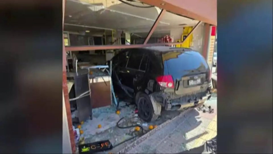 Την ώρα που η κοπέλα «μπούκαρε» με το όχημα που οδηγούσε στο κατάστημα, ευτυχώς δε βρισκόταν μέσα κανείς.