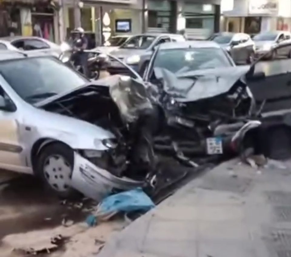 Η εικόνα από το σημείο του δυστυχήματος είναι χαρακτηριστική της σφοδρότητας της σύγκρουσης: παραμορφωμένα καπό, διαλυμένοι προφυλακτήρες και διασκορπισμένα θραύσματα σε ολόκληρο το οδόστρωμα και το πεζοδρόμιο. Το μηχανάκι που βρισκόταν παρκαρισμένο στην άκρη του δρόμου υπέστη επίσης καταστροφή, χωρίς ευτυχώς να βρίσκεται ο ιδιοκτήτης του κοντά.