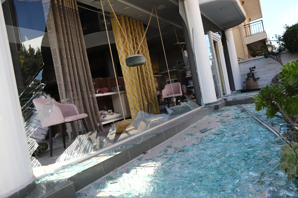 Από την έκρηξη προκλήθηκαν ζημιές στον υαλοπίνακα του καταστήματος.