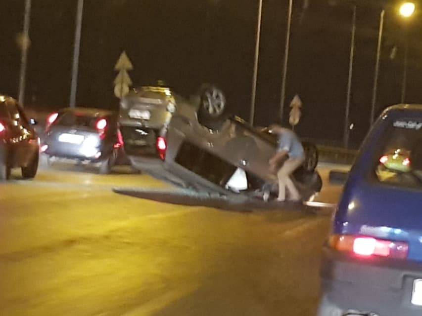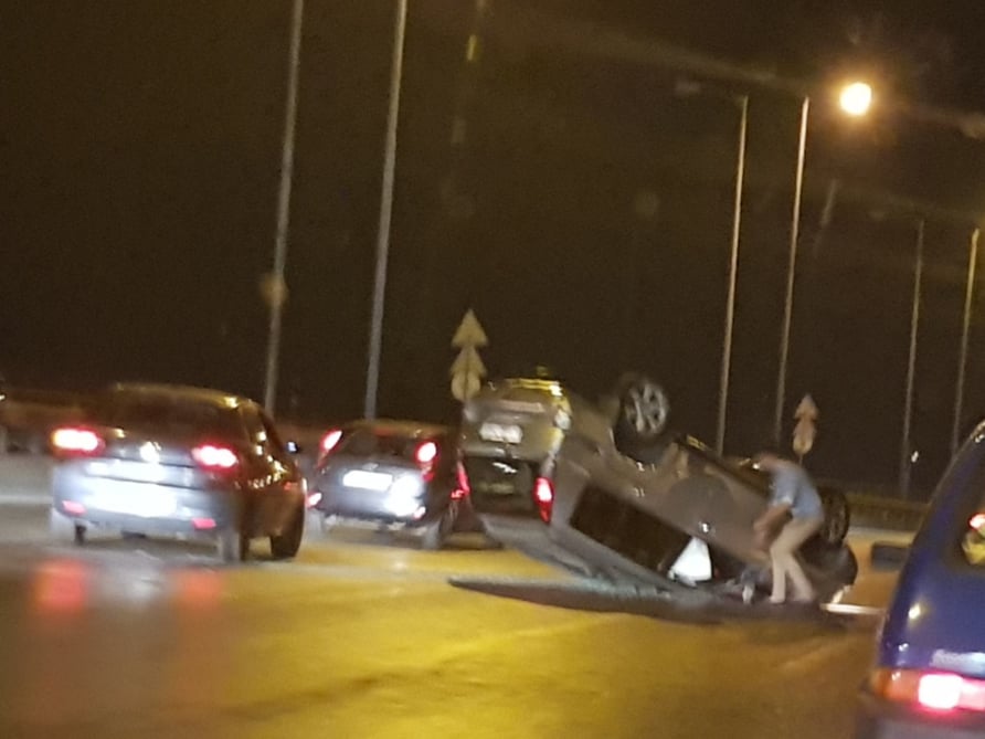 Εκεί, κάτω από αδιευκρίνιστες συνθήκες αυτοκίνητο αναποδογύρισε στη μεσαία λωρίδα, με αποτέλεσμα να κινδυνέψουν τόσο οι επιβαίνοντες όσο και διερχόμενα οχήματα.