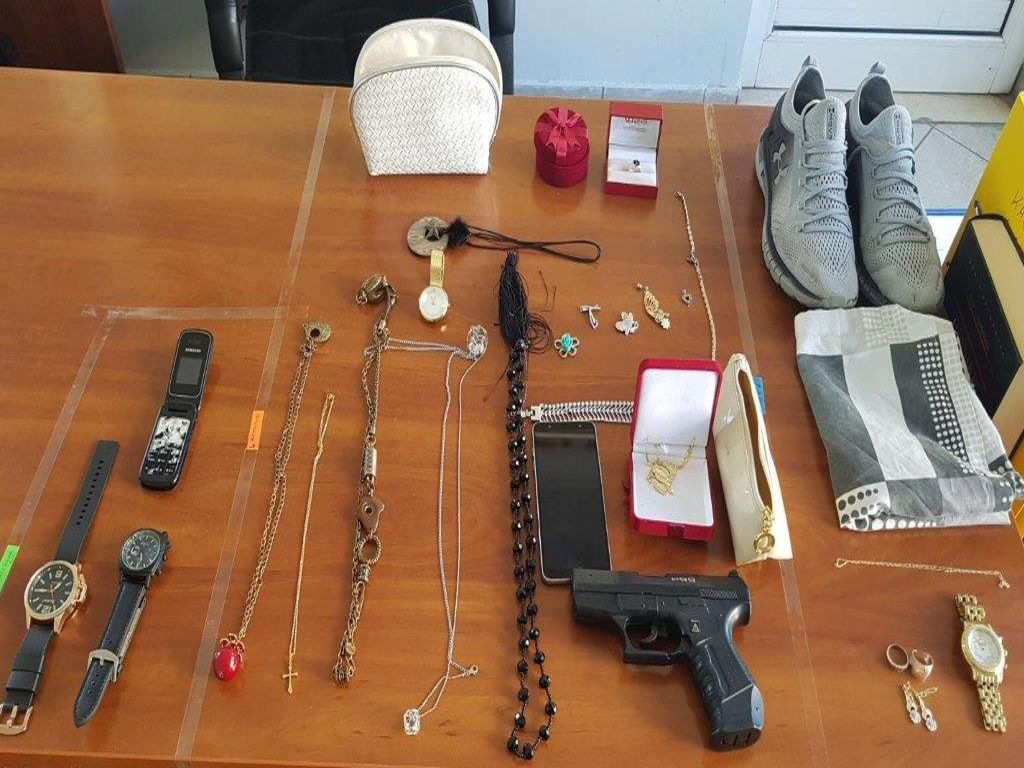 Σε έρευνες στα σπίτια τους, βρέθηκαν και κατασχέθηκαν κοσμήματα, ρολόγια, κινητά τηλέφωνα και πιστόλι ρεπλίκα.