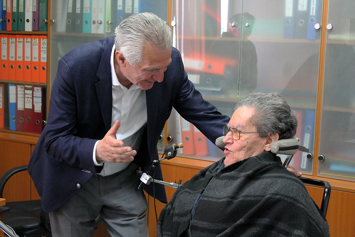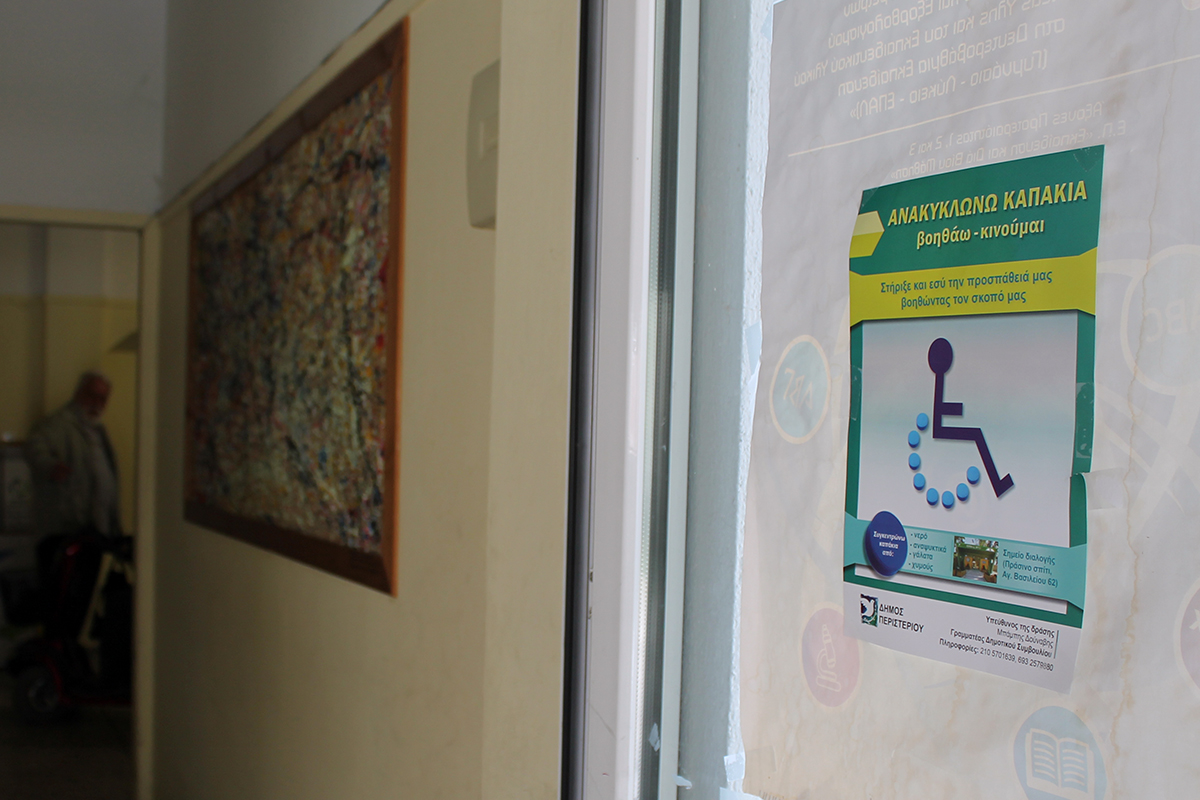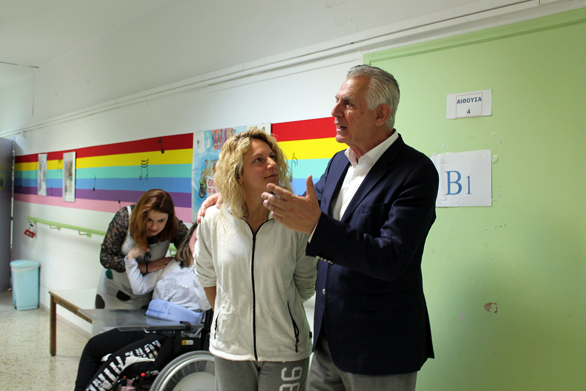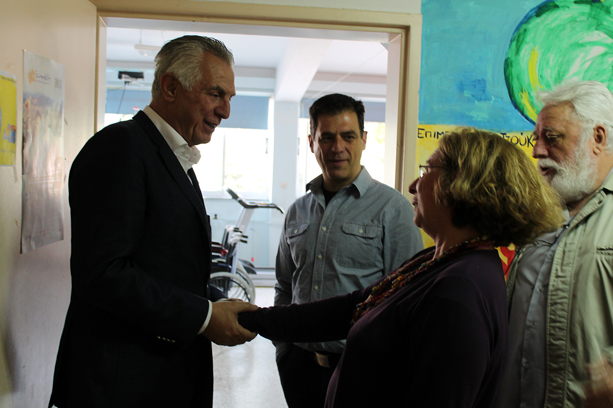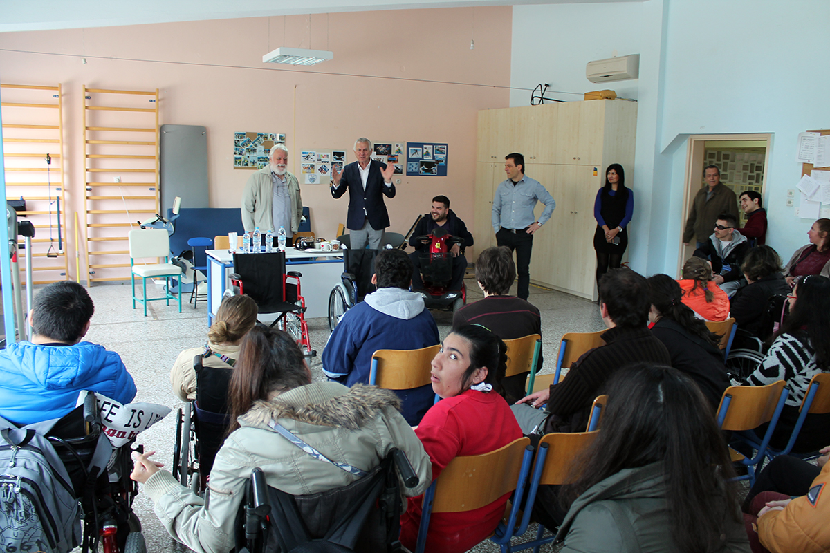 Ο Δήμαρρχος Περιστερίου έτυχε θερμής υποδοχής όχι μόνο για την προσφορά των αμαξιδιών αλλά και για την πολύχρονη παρουσία του εκεί ως πρόεδρος του Εθνικού Ιδρύματος Αποκατάστασης Αναπήρων.