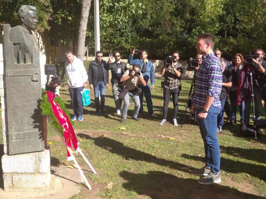 Ο κ. Κασσελάκης κατέθεσε στεφάνι στην προτομή του Σπύρου Μουστακλή και στη συνέχεια επισκέφθηκε το μουσείο του ΕΑΤ- ΕΣΑ.