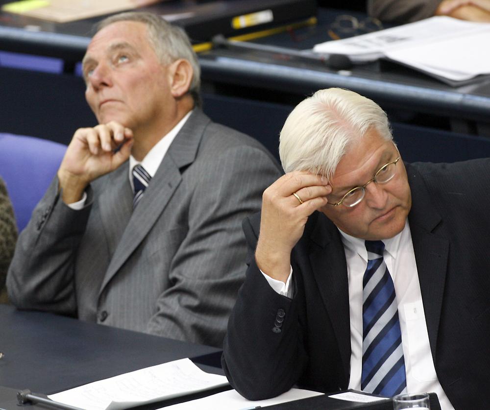 Ο υπουργός Εξωτερικών Φρανκ-Βάλτερ Σταϊνάγερ (δεξιά φωτό) και ο υπουργός Οικονομικών Βόλφγκανγκ Σόιμπλε (αριστερά φωτό) θεωρούνται πιθανοί υποψήφιοι για τη διαδοχή του προέδρου της Γερμανίας, Γιόαχιμ Γκάουκ, εάν ο τελευταίος αποφασίσει ότι δεν επιθυμεί δεύτερη θητεία.
