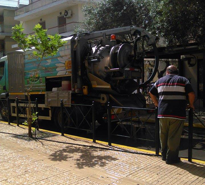 Όταν βγήκαμε στην οδό Αιμιλίου Βεάκη για να κάνουμε το ρεπορτάζ, εν όψει καλοκαιριού που μας χτυπάει σε λίγες μέρες την πόρτα, αντικρίσαμε μια υδροφόρα και δυο υπαλλήλους της καθαριότητας του Δήμου Περιστερίου να πλένουν επιμελώς τα πεζοδρόμια από τη μια άκρη μέχρι την άλλη…