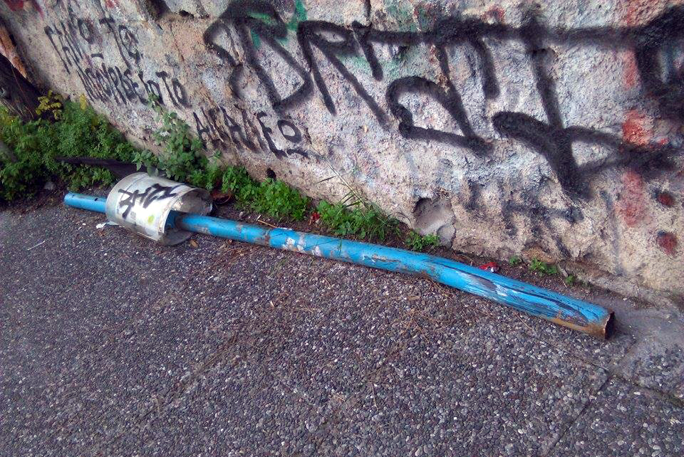 Επιβάτης που μας ενημέρωσε για το περιστατικό, μας είπε ότι την έψαχνε επί αρκετή ώρα, ανεβοκατεβαίνοντας την Εθνικής Αντιστάσεως και την ώρα που μονολογούσε ότι την κατάργησαν, είδε τη μισή τοποθετημένη στη μάντρα… και την υπόλοιπη πεταμένη στο πεζοδρόμιο…