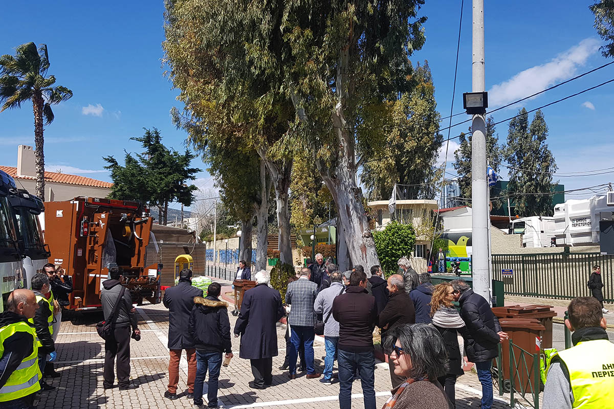 Σκηνές προ κορωνοϊού ζήσαμε σε επίσκεψη του Περιφερειάρχη Αττικής Γιώργου Πατούλη για την παράδοση οχημάτων ανακύκλωσης βιοαποβλήτων.