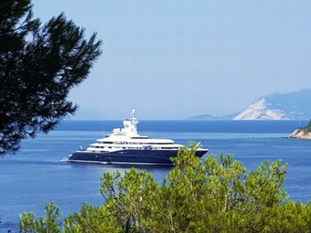 Η εντυπωσιακή θαλαμηγός «Αλ Μιρκάμπ» είναι μία από τις τρεις ακριβότερες στον κόσμο, έχει μήκος 135 μέτρα, διαθέτει δύο πισίνες, ελικοδρόμιο, τζακούζι, αίθουσα κινηματογράφου και δώδεκα σουίτες.