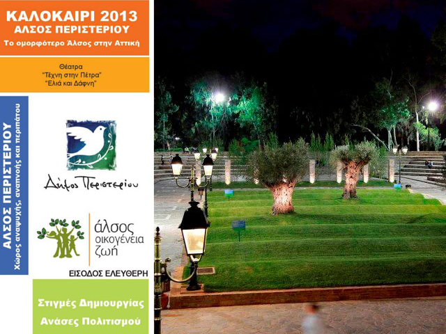 Οι εκδηλώσεις πάντα με είσοδο ελεύθερη θα πραγματοποιούνται στο Άλσος Περιστερίου, το ομορφότερο της Αττικής, στα θέατρα «Τέχνη στην Πέτρα» και «Ελιά και Δάφνη».