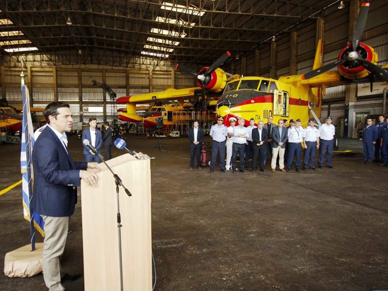 Επίσης, εξέφρασε την εμπιστοσύνη, τη στήριξη και τον θαυμασμό του ελληνικού λαού στις δυνάμεις ενάεριας πυρόσβεσης, που με κίνδυνο της ζωής τους αντιμετωπίζουν εδώ και χρόνια τη λαίλαπα των πυρκαγιών. «Η ετοιμότητά σας στην κατάσβεση των πυρκαγιών είναι το κρίσιμο σημείο στον ακήρυχτο πόλεμο με τα στοιχεία της φύσης», σημείωσε ο κ. Τσίπρας.