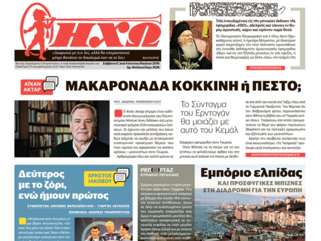 Σε όλα τα περίπτερα της Ελλάδας βρίσκεται πλέον η ιστορική εφημερίδα «Ηχώ» που εκδίδεται στην Κωνσταντινούπολη από το 1977. Πρόκειται για την καθυστερημένη άφιξη, στην ελληνική επικράτεια, της φωνής του ελληνισμού της Κωνσταντινούπολης.