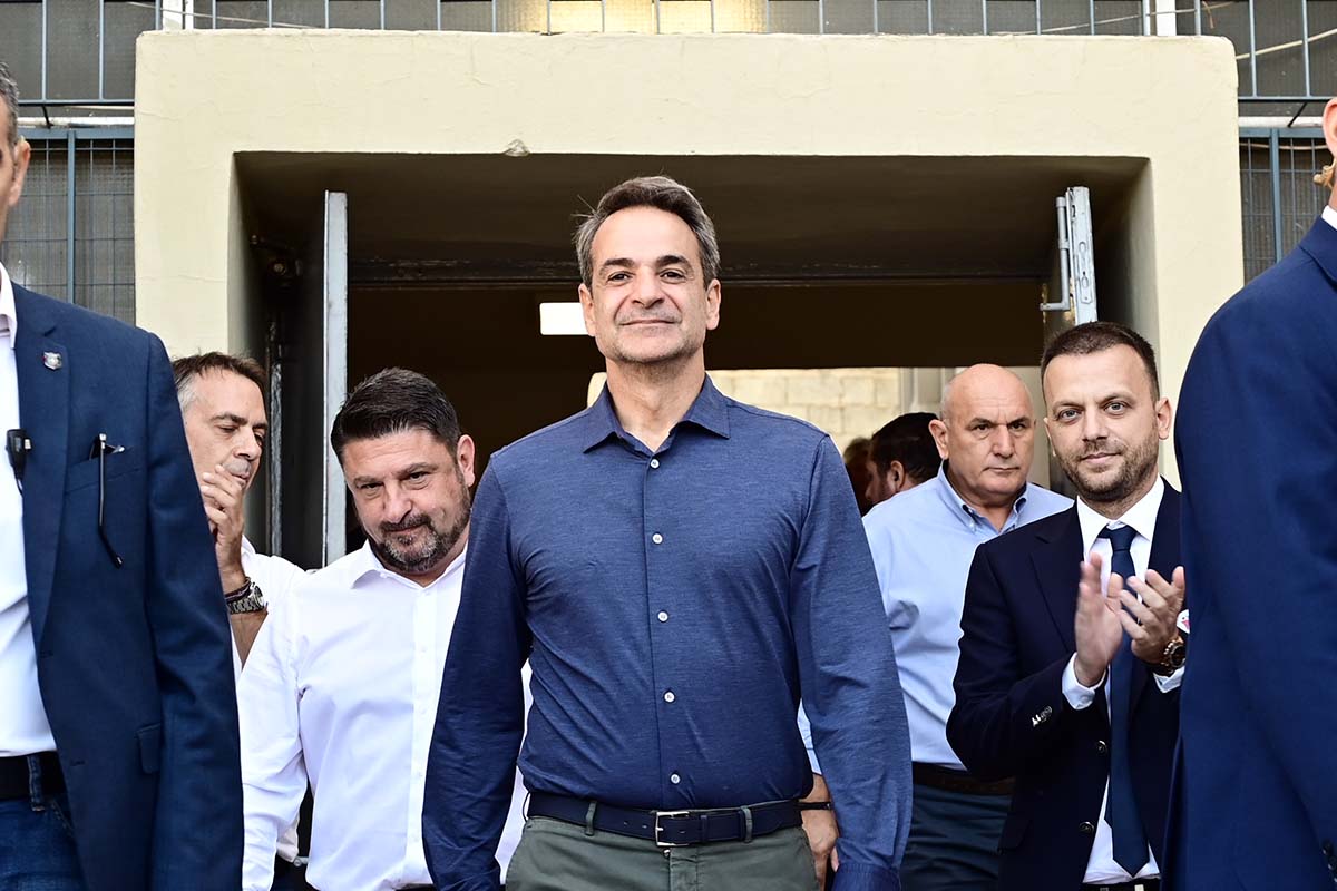 Τον πρωθυπουργό υποδέχτηκε ο υποψήφιος περιφερειάρχης Αττικής, Νίκος Χαρδαλιάς.