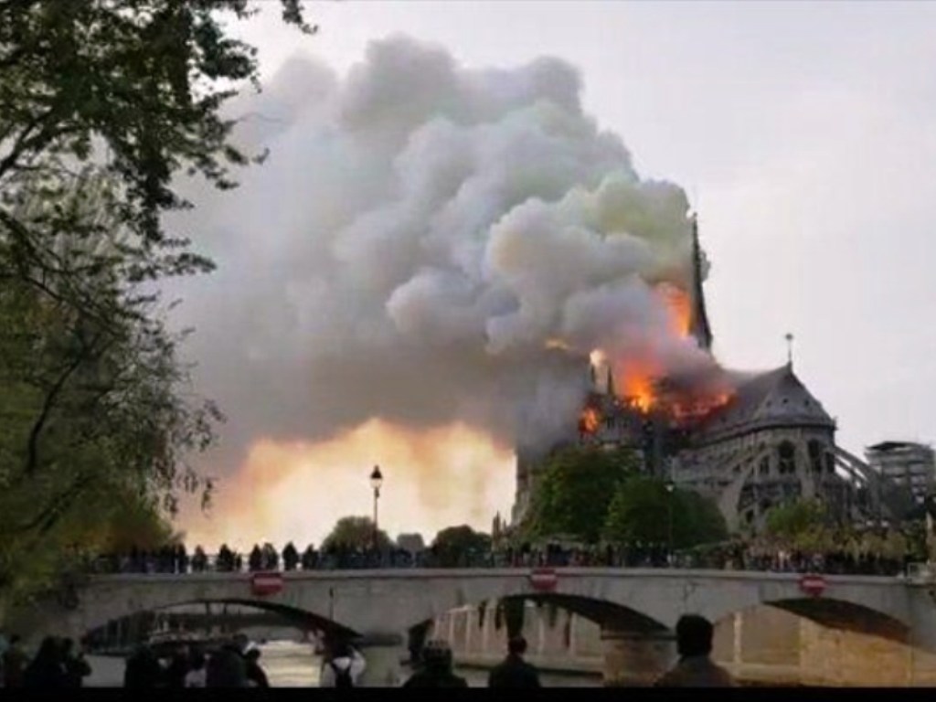 Πυκνό σύννεφο μαύρου καπνού έβγαινε από την κορυφή του καθεδρικού ναού, φλόγες έγλειφαν τη στέγη και ξεπηδούσαν από τα δύο κωδωνοστάσια, όπως φάνηκε και σε πολλές φωτογραφίες και βίντεο που αναρτήθηκαν σε ιστοτόπους μέσων κοινωνικής δικτύωσης.