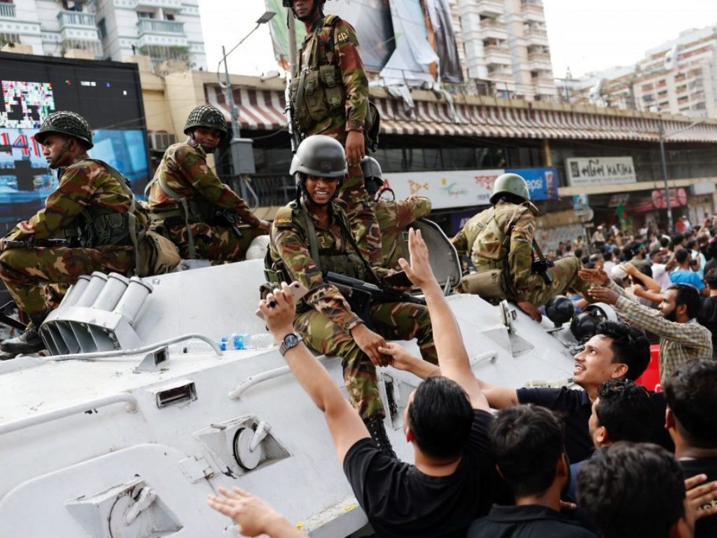 Ο αρχηγός του Γενικού Επιτελείου Στρατού επιβεβαίωσε σε δηλώσεις του την παραίτηση της Χασίνα και κάλεσε τους πολίτες σε αυτοσυγκράτηση ενώ ενημέρωσε ότι προετοιμάζεται προσωρινή κυβέρνηση με τη συμμετοχή όλων των κομμάτων της χώρας.