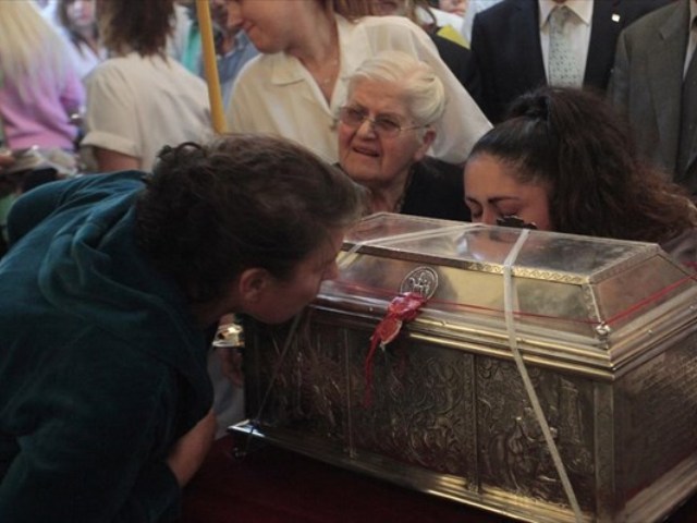 Το ιερό σκήνωμα προσκύνησαν σε κλίμα κατάνυξης και ευλάβειας οι ασθενείς και οι συγγενείς τους.