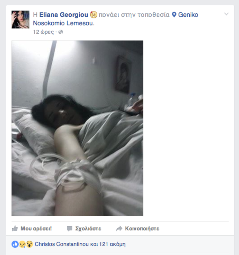 Η ίδια η Ελιάνα ανέβασε φωτογραφία από το νοσοκομείο στην σελίδα της στο Facebook