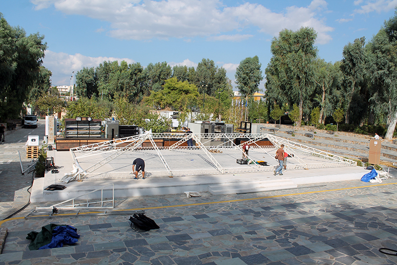 Όσοι βρέθηκαν σήμερα στο πάρκο της πόλης είδαν τις εργασίες να είναι πυρετώδεις με σκοπό την προετοιμασία των εκδηλώσεων στο θέατρο “Τέχνη στην πέτρα”.