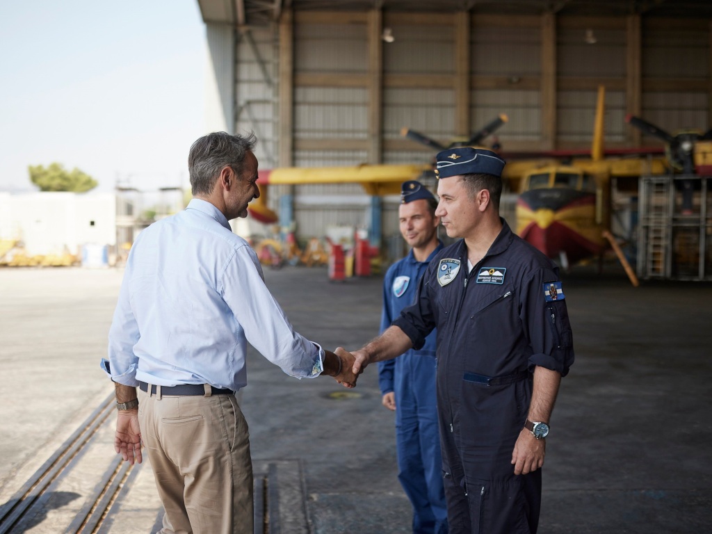 Η επένδυση στις υποδομές πολιτικής προστασίας, ειδικά στα αεροσκάφη μας, είναι απολύτως απαραίτητη. Να ξέρετε ότι θα έχετε όλη μας τη στήριξη, ο Υπουργός θα τρέξει “σφαίρα” τα προγράμματα», σημείωσε ο Πρωθυπουργός μιλώντας με τους πιλότους της 383 Μοίρας η οποία έχει την έδρα της στη Θεσσαλονίκη αλλά αναπτύσσεται στο Στρατιωτικό Αεροδρόμιο Ελευσίνας κατά τη διάρκεια της αντιπυρικής περιόδου.