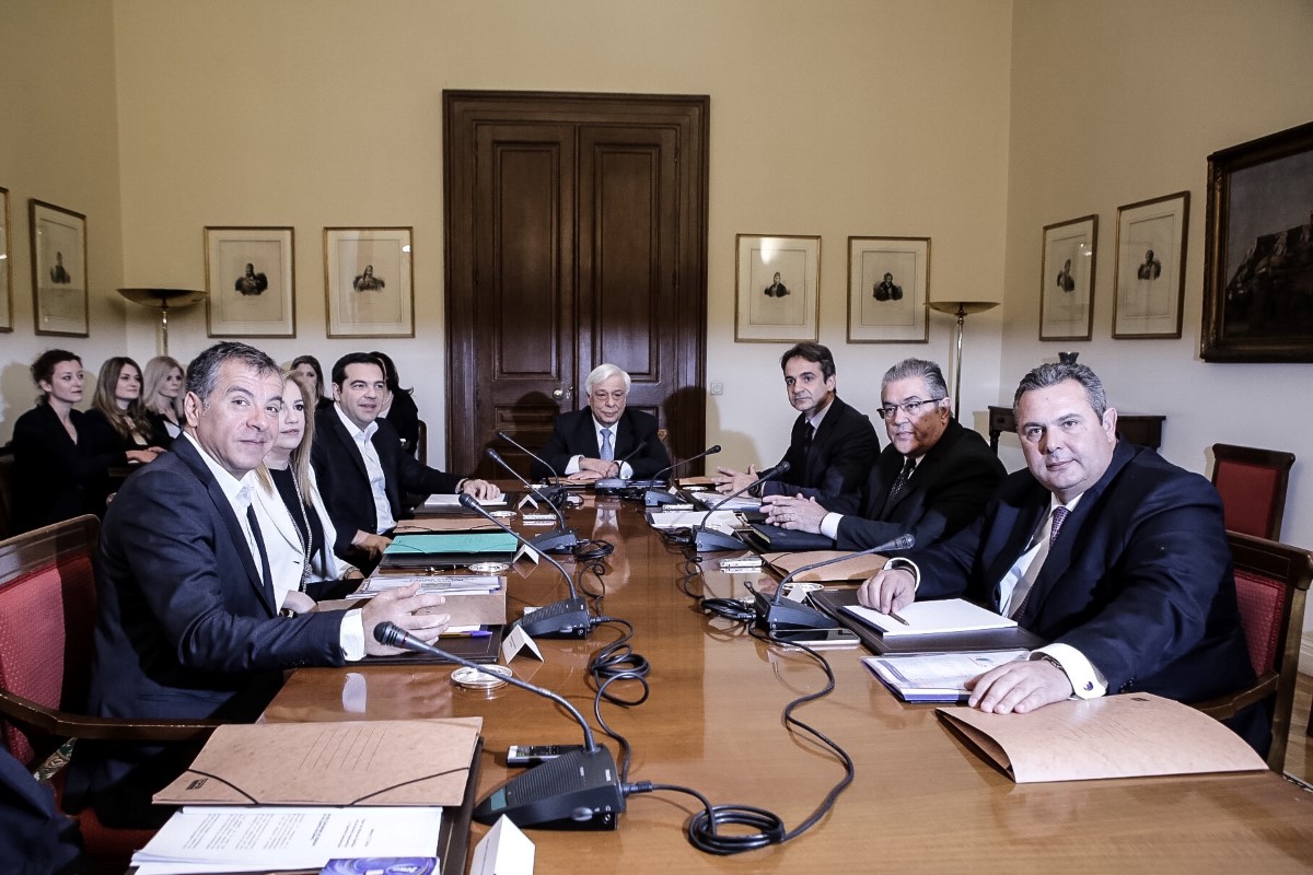 Με ζητούμενο τη διαμόρφωση μίας κοινής γραμμής για το προσφυγικό, εν όψει της Συνόδου Κορυφής της 7ης Μαρτίου, συνεδριάζει από τις 12 το μεσημέρι το συμβούλιο των πολιτικών αρχηγών, υπό τον Πρόεδρο της Δημοκρατίας Προκόπη Παυλόπουλο, στο Προεδρικό Μέγαρο.